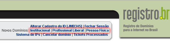 1) Vá no site do registro.br (http://www.registro.br) e faça o seu login clicando aqui. Caso não lembre da sua senha, siga estas intruções, ou se você não lembra de seu ID, clique aqui.