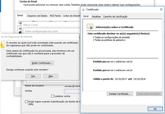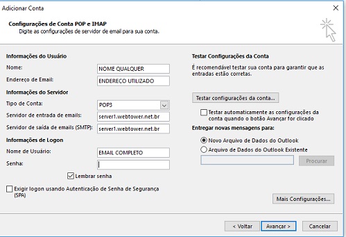 Tutorial Webtower para configuração de contas de email no software Microsoft Outlook *