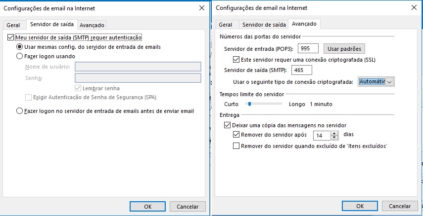Clique em mais configurações > servidor de saída e marque meu servidor conforme figura
